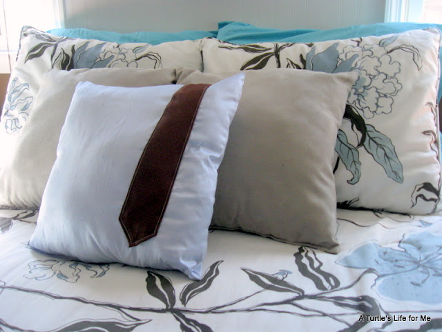 The pillow is the one that I made from a thrift store tie and clearance napkins.