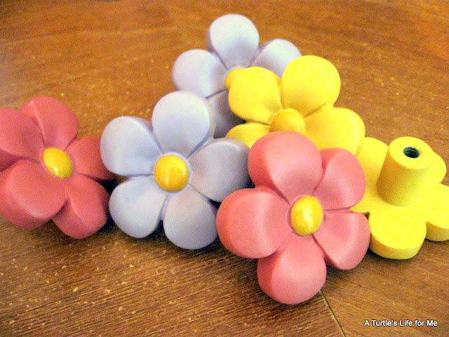 I had some wooden knobs I was going to paint and try to screw in, but then BAM!! I remembered I had some flower knobs leftover from a dresser I redid about 7 years ago! I can’t believe that not only have I not done anything with these in 7 years, but that I knew exactly where to go to find them!!