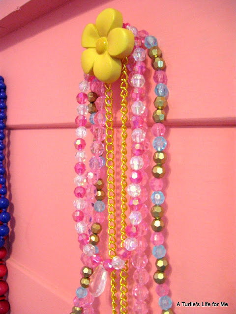 I hot glued 4 on one side for necklaces and 2 on the other side for hats.