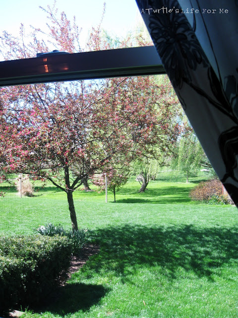 and speaking of pretty… after I took these pictures, I turned around and this is what I saw out of my bedroom window. I love my backyard all the time, but especially this time of year! There are actually houses back there, but you can’t even see them with how full all the trees are!