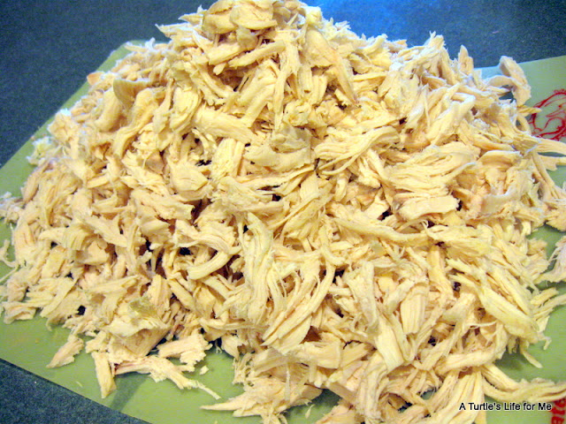 Also, I like big chunks of chicken in mine.  I don’t use a knife to chop it or cut it up.  Just my fingers to pull it into big ole chunks.