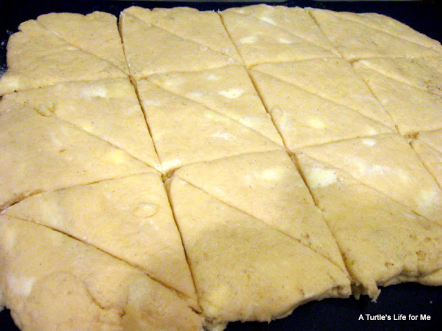 Score the pastry into triangles. I was able to get 24 triangles out of my pastry.