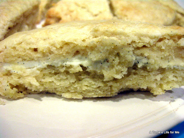 This was a wonderful way to use the last of my vanilla beans and cream cheese! I refrigerated the extra and thanks to the cream cheese, they weren't dry the next day like many scones.