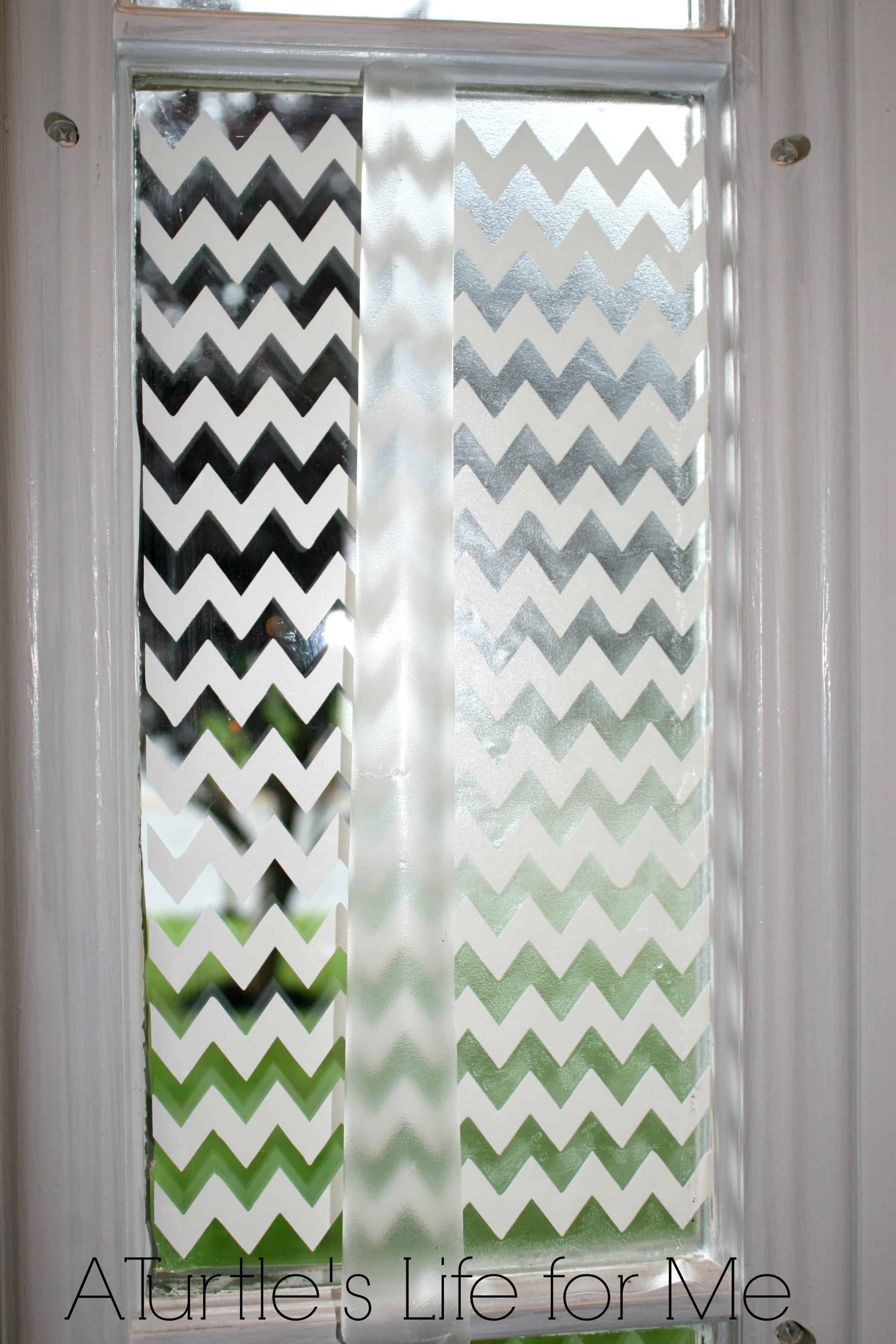 All I did was measure my window openings, use the ruler in the Silhouette (the Designer Edition has an advanced ruler tool that makes this super easy), and then cut them out on vinyl. I used my favorite transfer tape to transfer them to the window. Here’s a little tip for you… the first panel I did, I tried to pull the transfer tape off from top to bottom and it took FOR-EVAH!!! All those little points and tips were just not coming off smoothly. For the second panel, I tried taking it off side to side and it went about 56 times as fast! Go side to side for this pattern!!